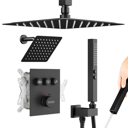 View full detailsSTARBATH Thermostatic Shower System (12+8 Inch) with Two Function Wand Matte Black