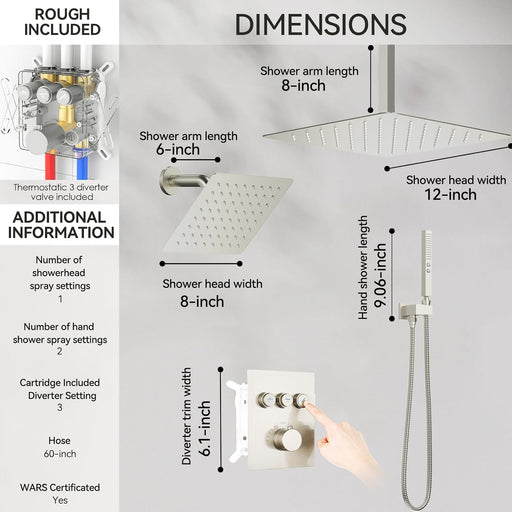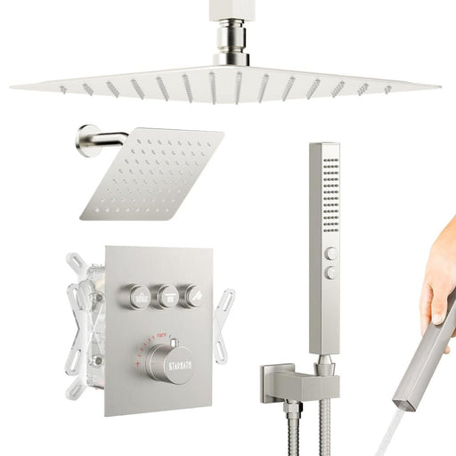 View full detailsSTARBATH Thermostatic Shower System (12+8 Inch) with Two Function Wand Brushed Nickel