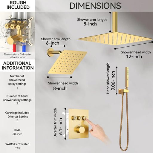 View full detailsSTARBATH Thermostatic Shower System (12+8 Inch) with Two Function Wand Gold