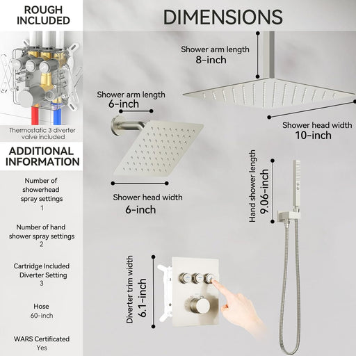 View full detailsSTARBATH Thermostatic Shower System (10+6 Inch) with Two Function Wand Brushed Nickel