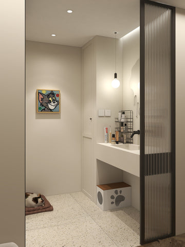 The walls of below bathroom are made of micro-cement, and the floor is terrazzo of the same color, which is pure and elegant.