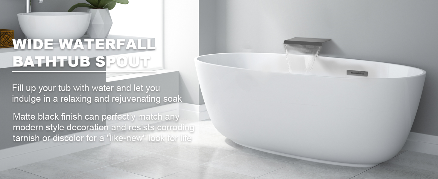 Waterfall Wider Tub Spout: Bathtub spout is made from high-quality stainless steel & brass. A flat waterfall tub filler with a high flow rate fills up your bathtub quickly and reduces temperature loss. This bathtub shower faucet system will complete your shower experience. A shower can be a pleasurable experience, allowing one to escape from daily tasks and chores for a while and giving you time to relax after a long day of work.