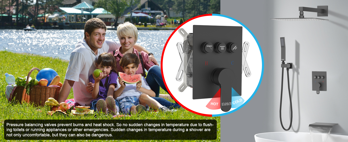 • Certified pressure balance shower valve and high-quality materials, all-round protection of family use safety;