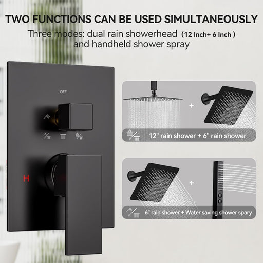 Can run 4 functions: Our matte black dual shower head shower system controller allows you to easily switch from 12 inch rain shower head to 6 inch ...