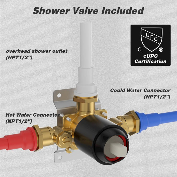 The pressure balance valve with cUPC certification can effectively control the water pressure balance to prevent scald and cold water shock. The valve body is cast in high-quality brass, which is durable and not easy to rust, adding a SWISS high-quality NEOPERL check valve, which can effectively prevent valve noise.