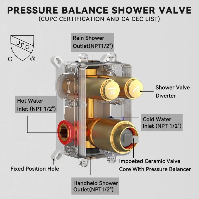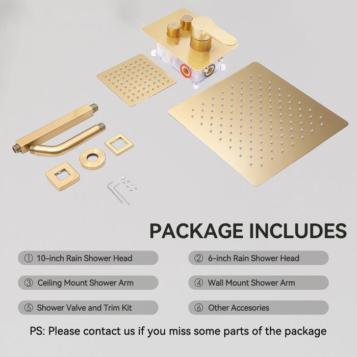 STARBATH 10+6 Inch Dual Shower Head System Gold