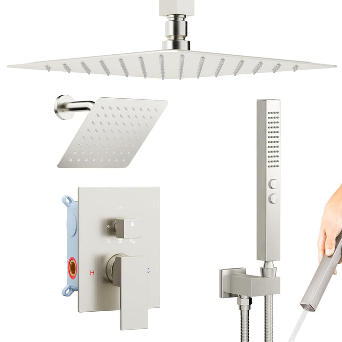 STARBATH 12+6 Inch Dual Shower Head System with Two Function Handheld Shower Head Brushed Nickel
