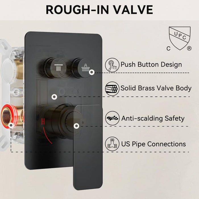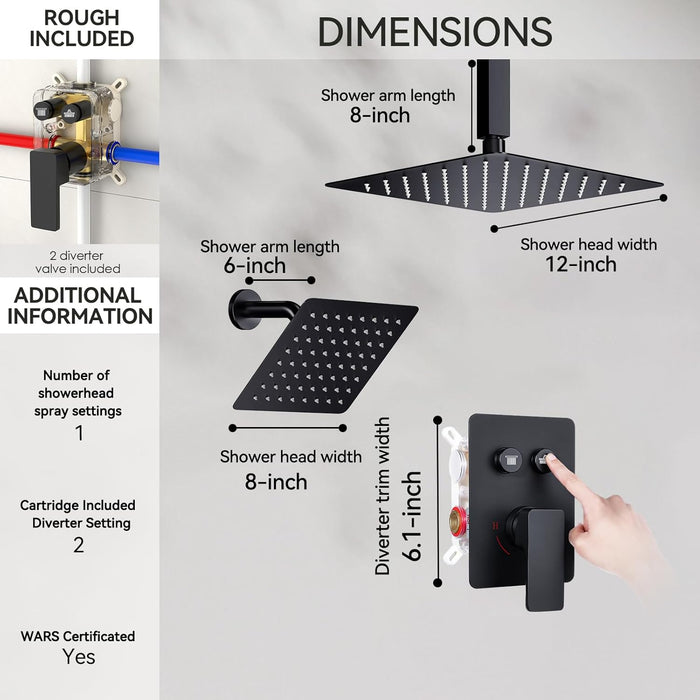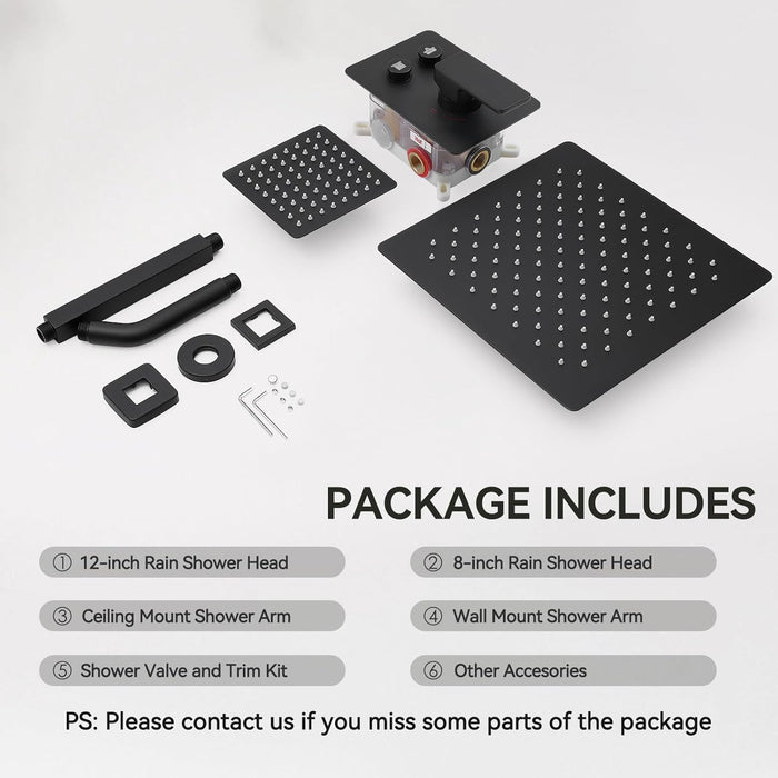 STARBATH 12+8 Inch Dual Shower Head System Black