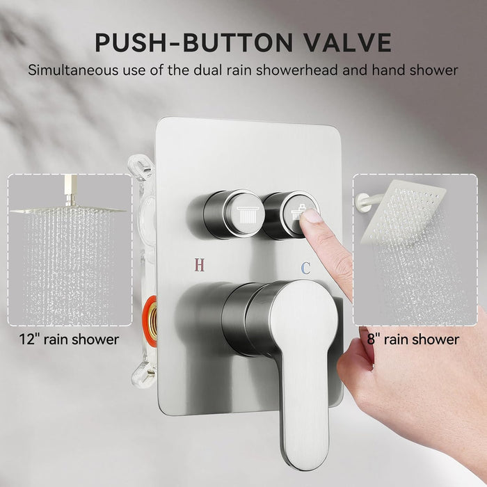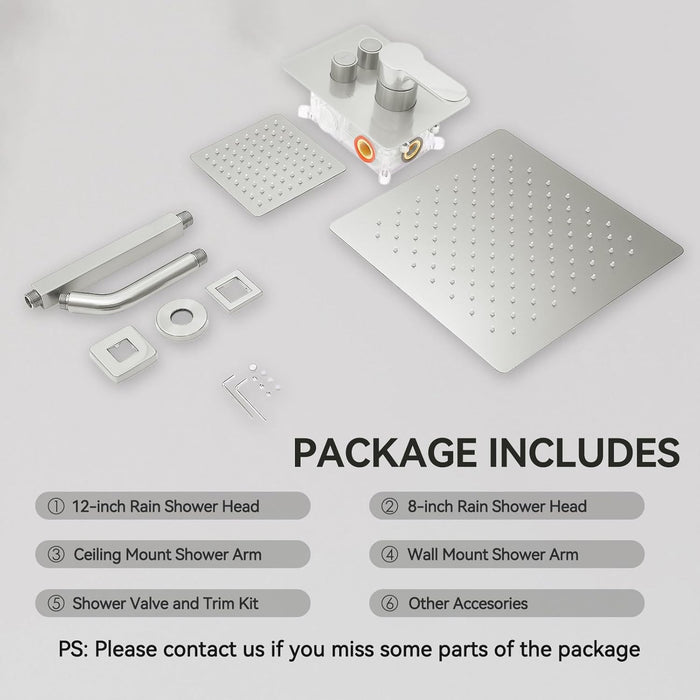 STARBATH 12+8 Inch Dual Shower Head System Brushed Nickel