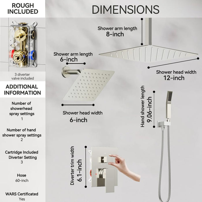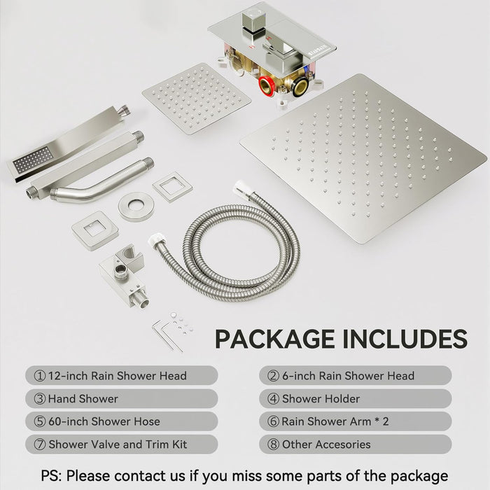 STARBATH 12+6 Inch Dual Shower Head System with Handheld Shower Head Brushed Nickel