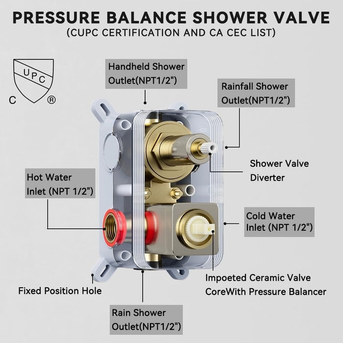 5. The recommended water temperature of hand shower and rain shower is W42°C; water pressure 0.1-0.3 Mpa. The highest temperature should not reach beyond 70°C and water pressure should not exceed the limits of 0.05-0.5 Mpa. Please keep any shower products away from the heating devices to avoid potential risks.