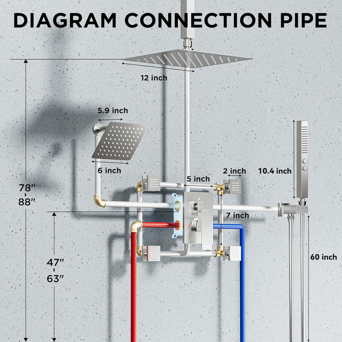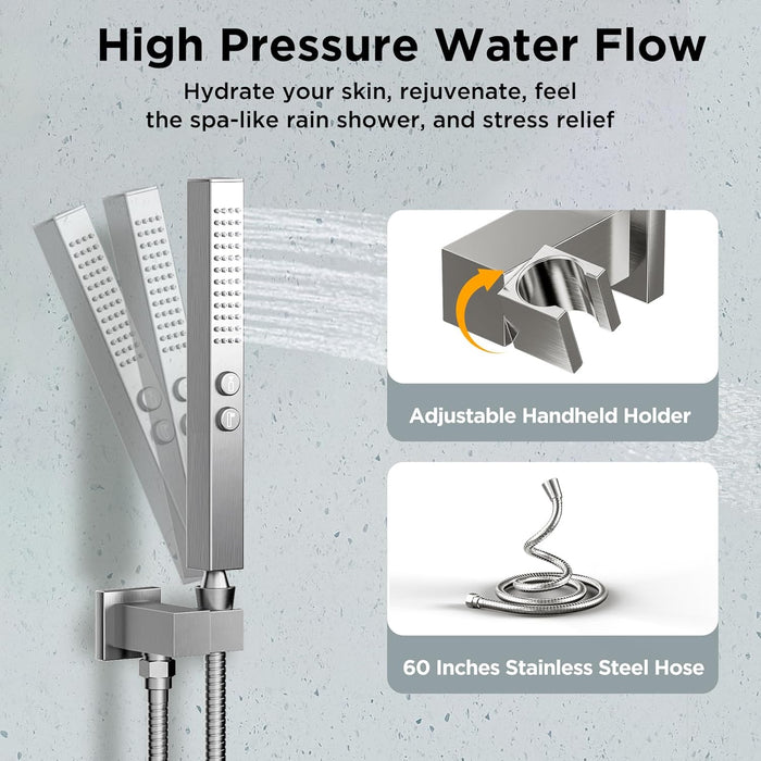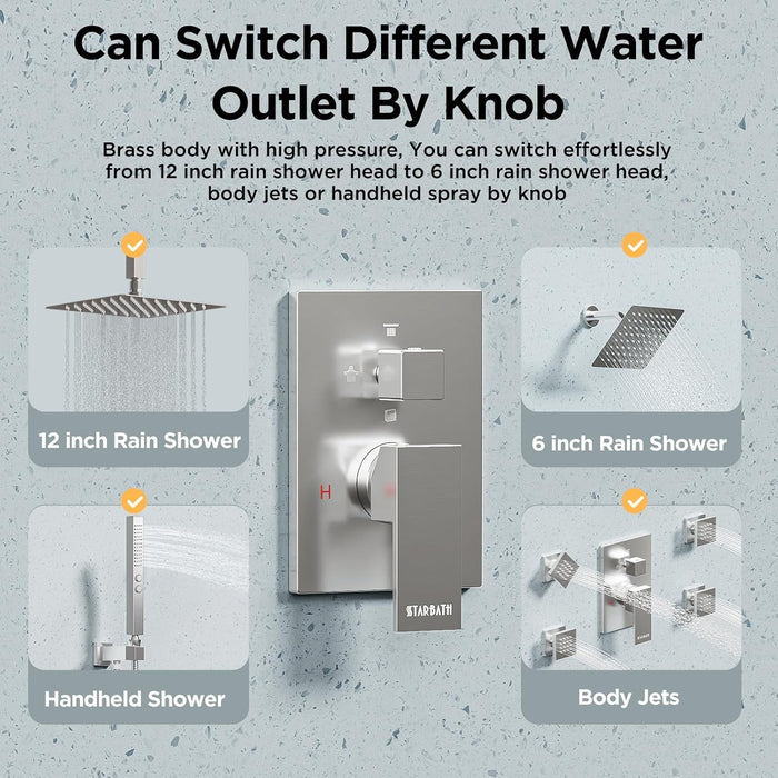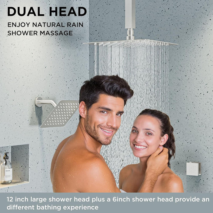 STARBATH Dual Shower Heads (12+6 Inch) Shower System 4 Function Brushed Nickel