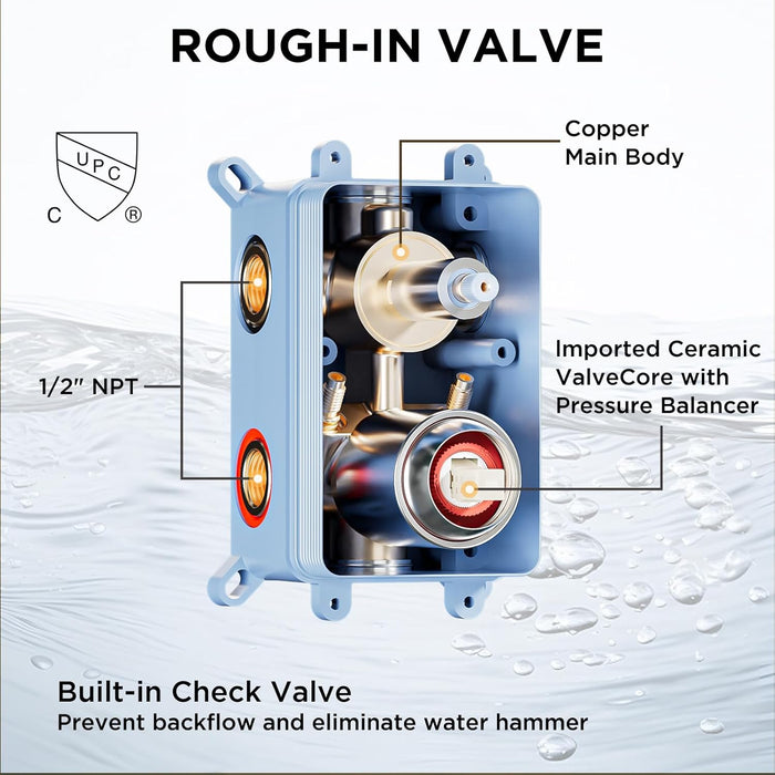 5. The recommended water temperature of hand shower and rain shower is W42°C; water pressure 0.1-0.3 Mpa. The highest temperature should not reach beyond 70°C and water pressure should not exceed the limits of 0.05-0.5 Mpa. Please keep any shower products away from the heating devices to avoid potential risks.