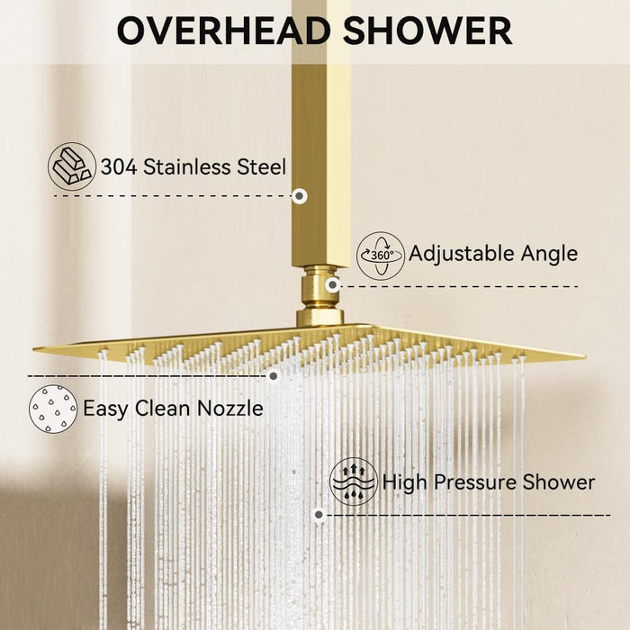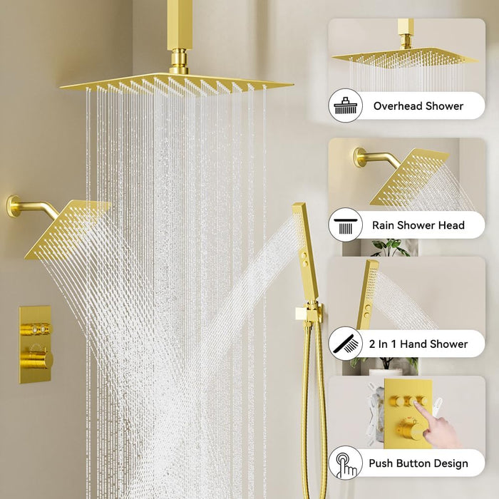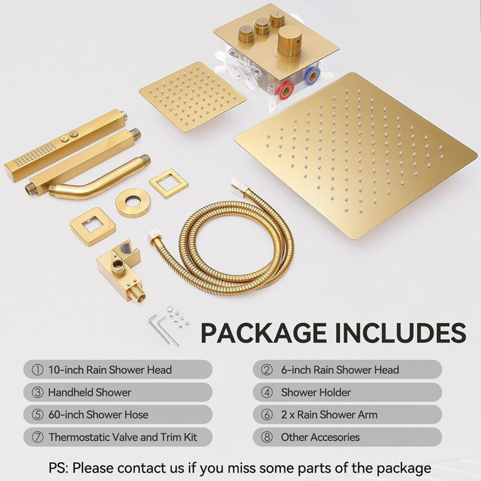 STARBATH Thermostatic Shower System (10+6 Inch) with Two Function Wand Gold